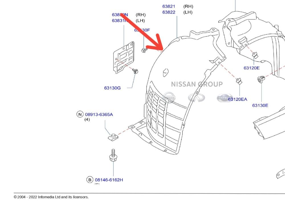 بطانة رفرف امامي جهة الصدام انفنتي 2006 - 2008 FX